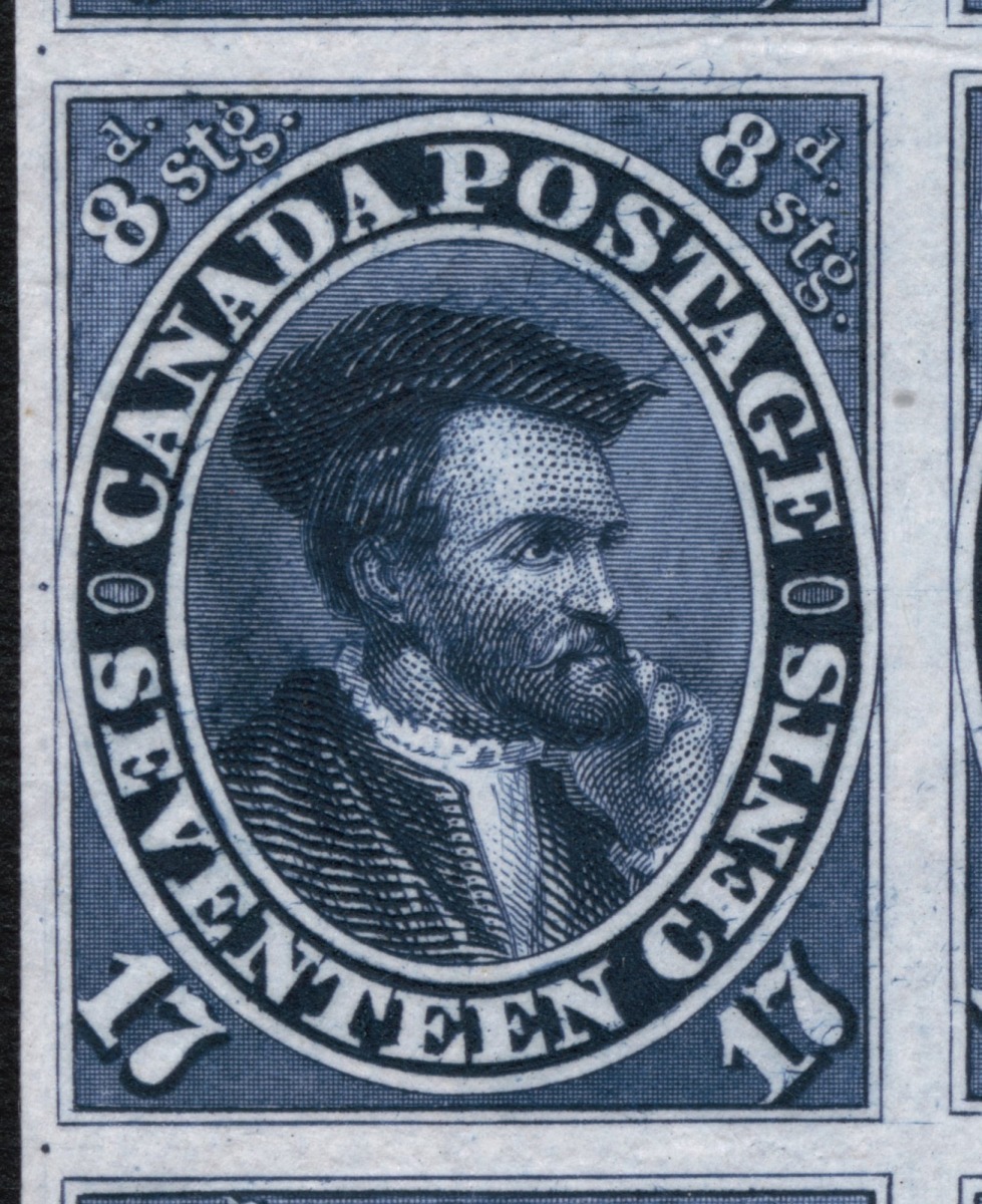 Careful examination shows that there is a slight doubling in the LL corner, with the horizontal hatch lines protruding through the inner LH frame line and very slight doubling of the LL bottom frame line. The centre guide dot is superimposed on the horizontal guide line