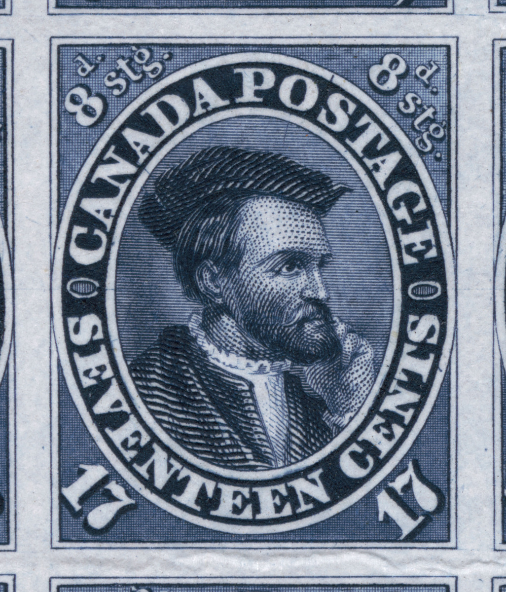 Left oval dot at 3 o'clock, faint vertical transfer at upper right.There is also a small mark in the white part of the large Oval, just below the C of Canada